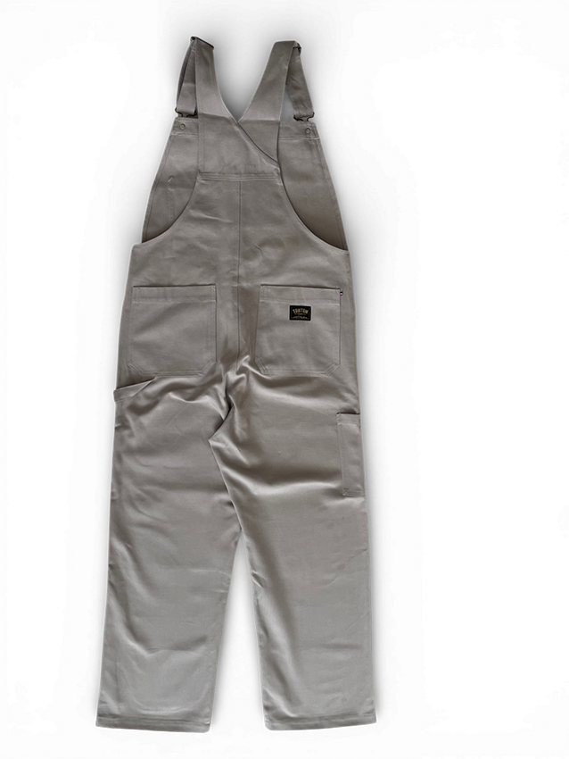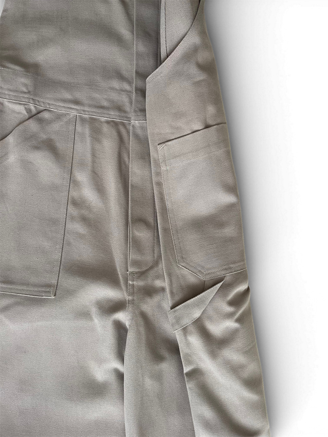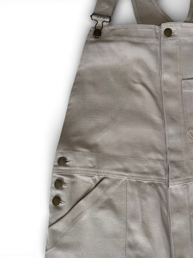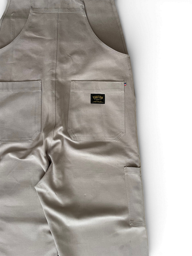 Inspired by US Navy work overalls from the 1940s, it takes up the codes of military mechanics' overalls. These overalls are both comfortable and rustic and can be opened completely with a button closure. Loose fit.