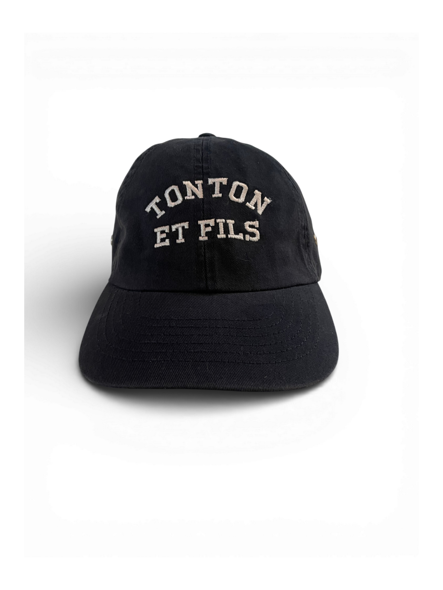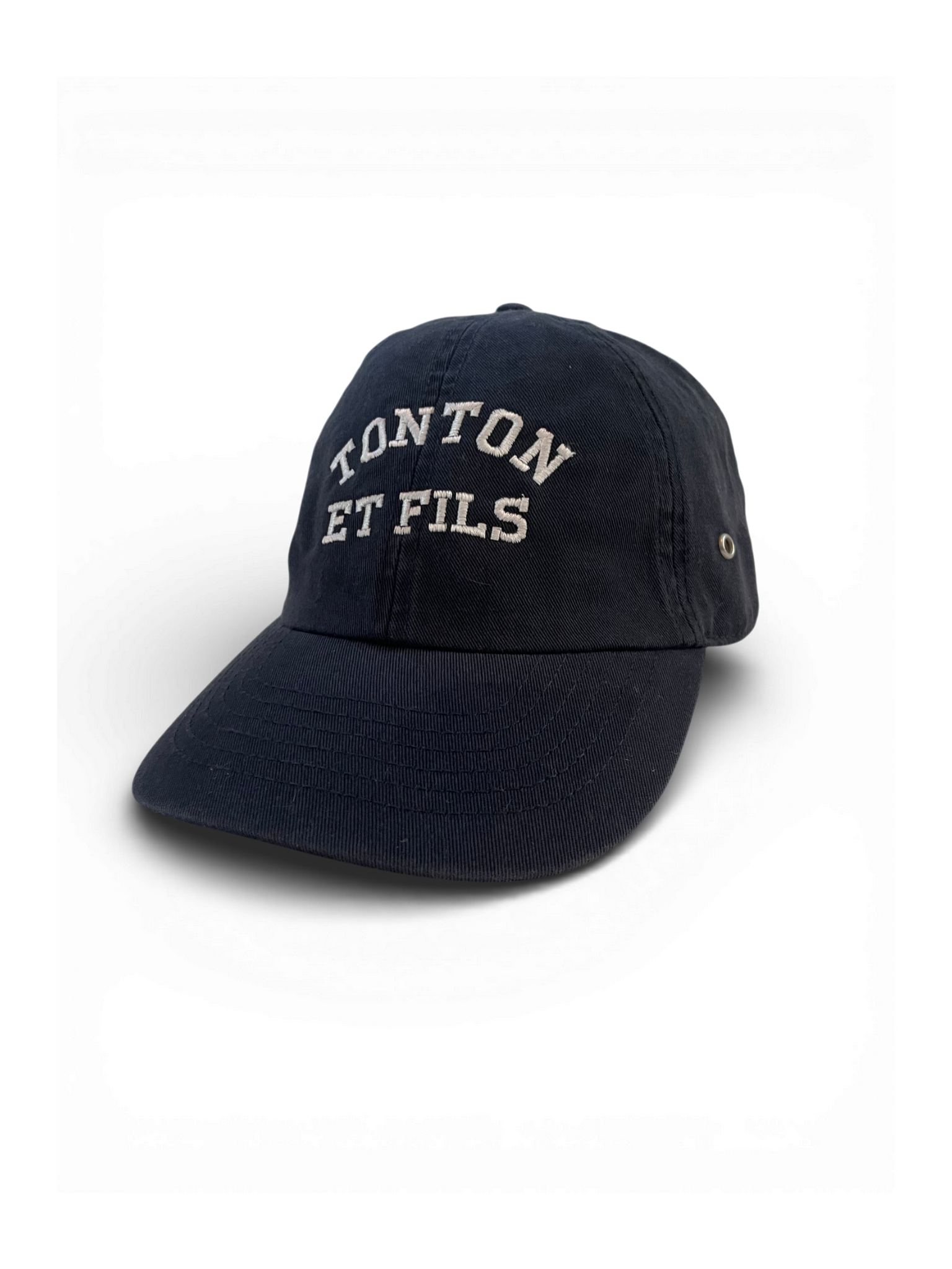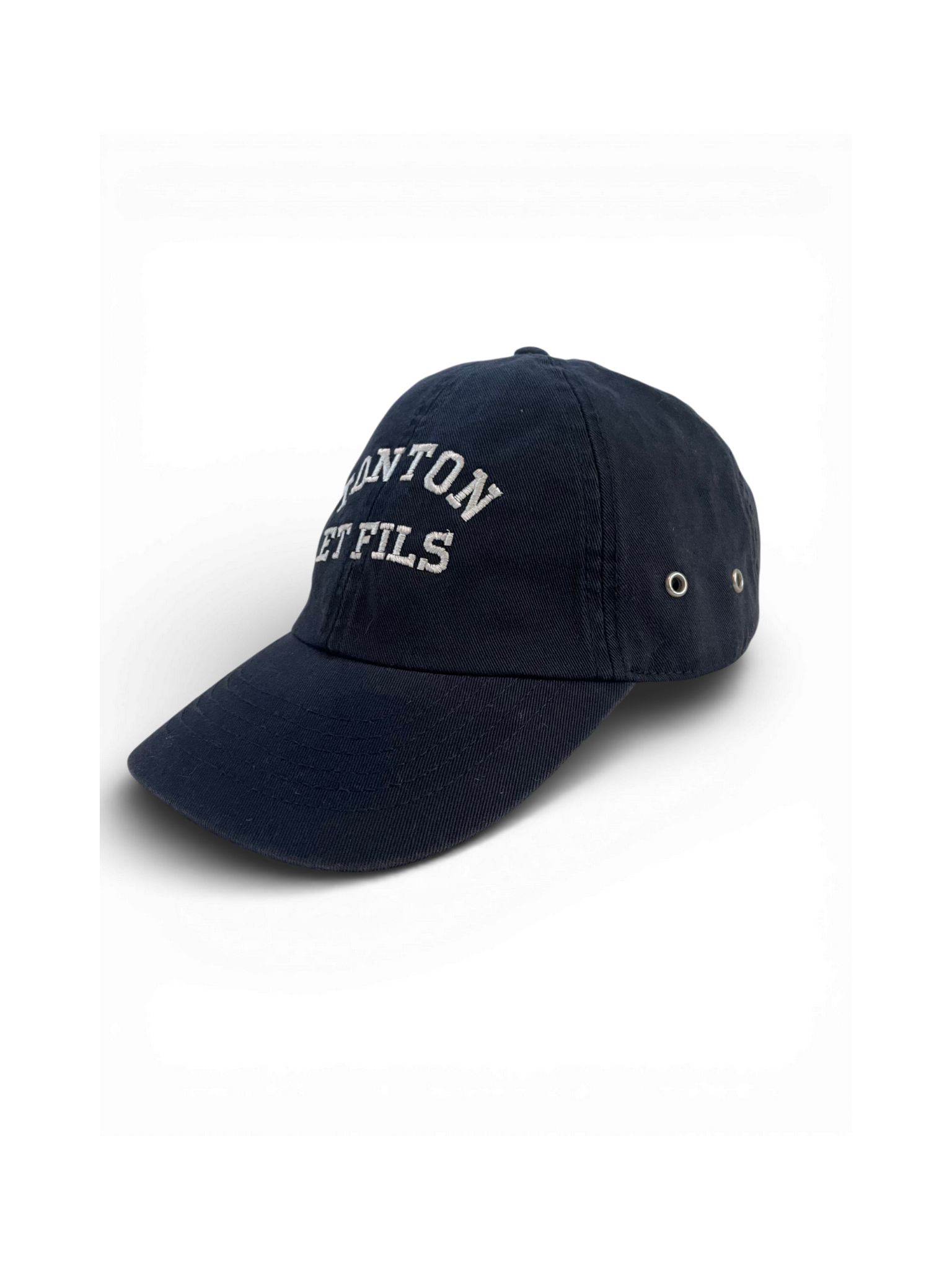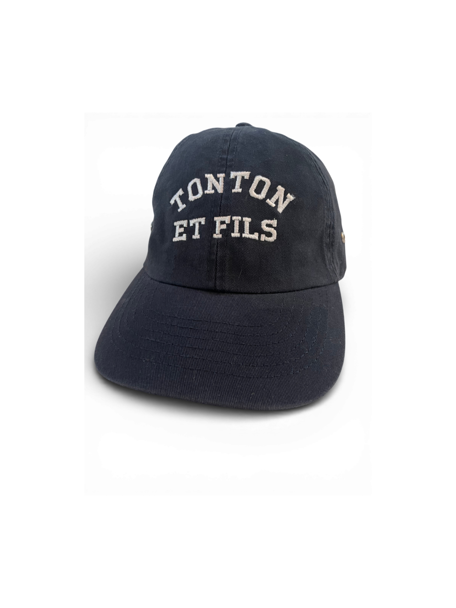 Elle est agrémentée d'une broderie "Tonton et Fils" et d'une boucle d'ajustement